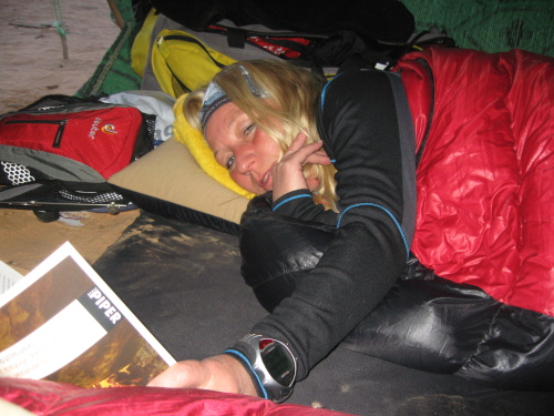 Tagsüber ist es zwischen 22 und 31 Grad warm, nachts fällt die Temperatur empfindlich ab. Und dann steht man einfach auf und bewegt sich ein bisschen und wartet bis zum Frühstück, schluckt seine Salztabletten, packt die Tasche und wartet auf den Start um 10:30 Uhr.