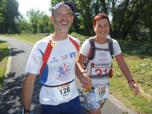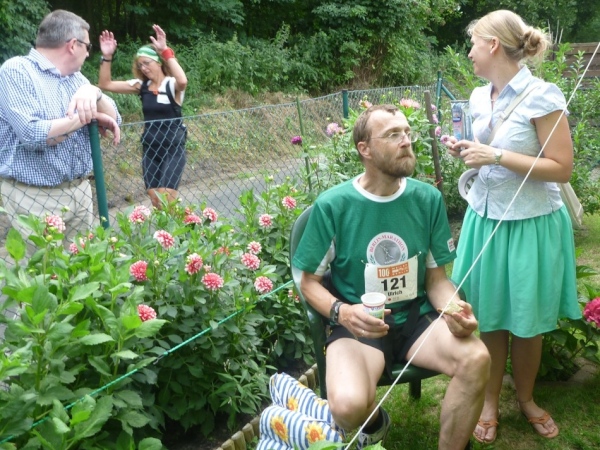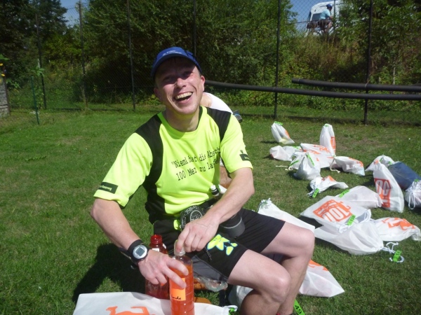 VP 12 (km 68) Gartenlaube Pletscher, VP 13 (km 72) Pagel & Friends. Laut werde ich von den kleinen Mädchen empfangen: “Die Nummer 5, die Nummer 5!” “Die Nummer 5 ist Joe Kelbel!” ertönt es daraufhin aus dem Lautsprecher. “Was möchtest du trinken?”