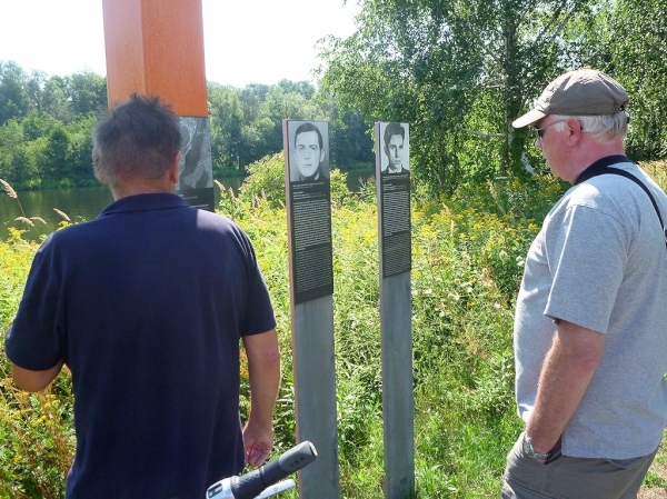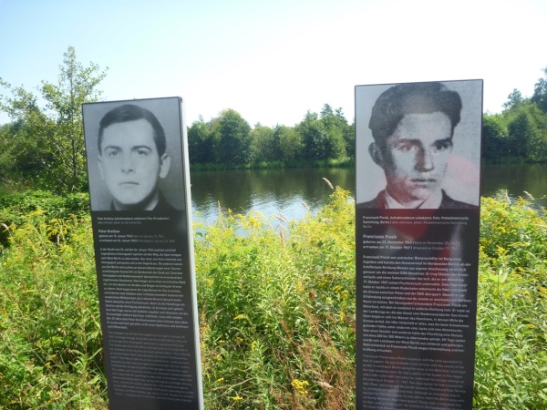 VP 11 (km 61) Falkenseer Chaussee. Ulrich und Egon waren als Grenzsoldaten für die Fahrradstreife eingeteilt (1980). Der 19 jährige Egon schoss Ulrich in den Rücken und floh in den Westen. Der Schuss war tödlich. Egon verbüßte 20 Monate in Westhaft.
