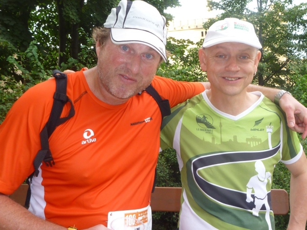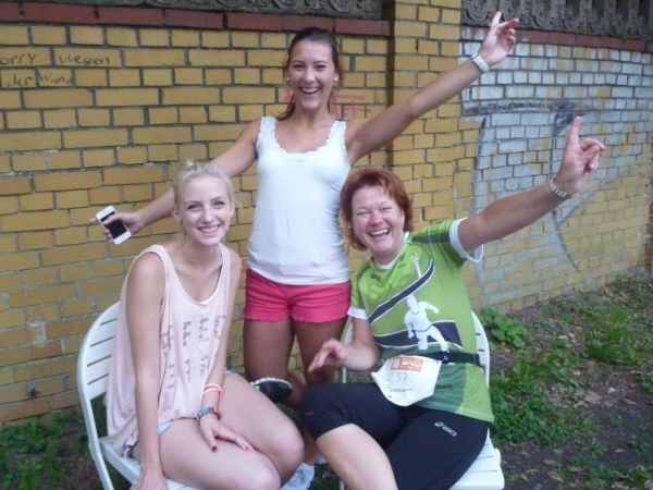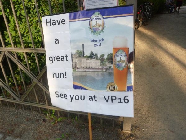 VP 16 (km 93) Brauhaus Meierei, hier gibt’s Bier, eiskalt vom Fass. Da kommt die Nachricht, dass Maria gestürzt ist, scheiß Vorkriegswege, Blut, Gehirnerschütterung, Notarzt, Krankenhaus. HaWe ist der Held des Tages, er war den ganzen Tag mit Maria zusammen, begleitet sie nun ins Krankenhaus. 3 Stunden Beistand, Formulare und sonstiges, dann lässt er sich zurücktransportieren und finisht wenige Sekunden vor Zielschluss. Danke im Namen aller Läufer für dieses vorbildhafte Verhalten!