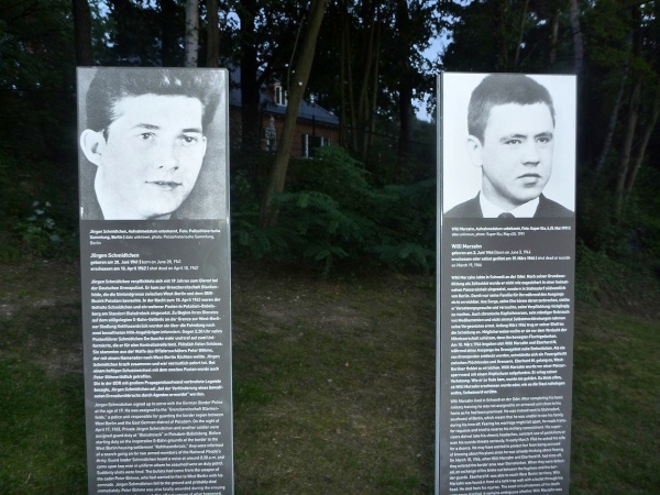 VP 17 (km 99) Gedenkstätte Griebnitzsee. Schon komisch, aber die Elemente, die hier zusammengetragen wurden, stammen aus Grabungen. Nicht die sechs Mauerelemente, die sind hierher befördert worden, sondern die Fundamente des Wachturms, die Großpflastersteine.