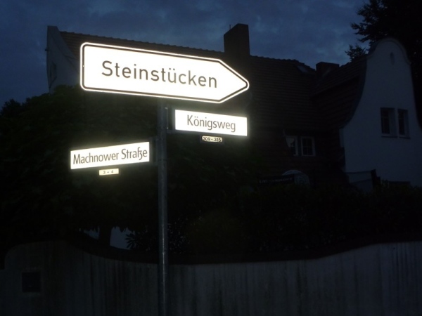 1,2 Kilometer lang war die Straße, die von Westberlin durch die DDR nach Steinbrücken führte. Dort wohnten einige hundert Westberliner. Wasser und Strom lieferte die DDR, der Telefonanschluss stammte aus Vor-Mauerzeit. Wir nehmen die Abkürzung über die Kohlhasbrücke, laufen den Königsweg bis zum Ende.