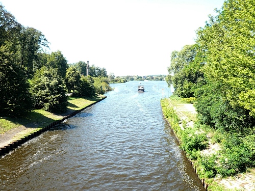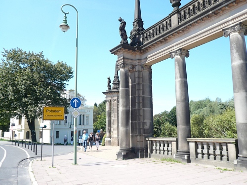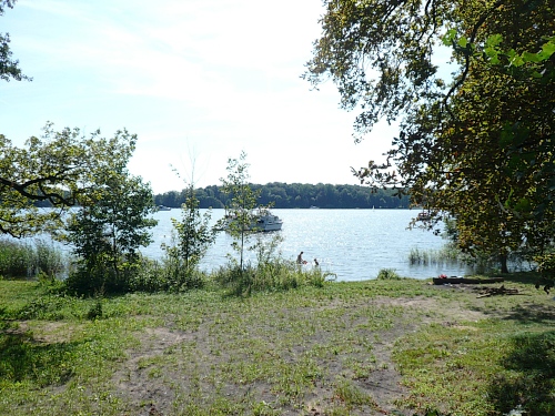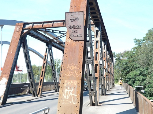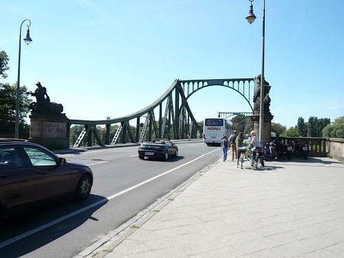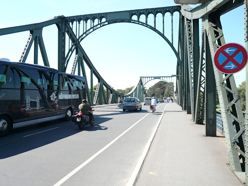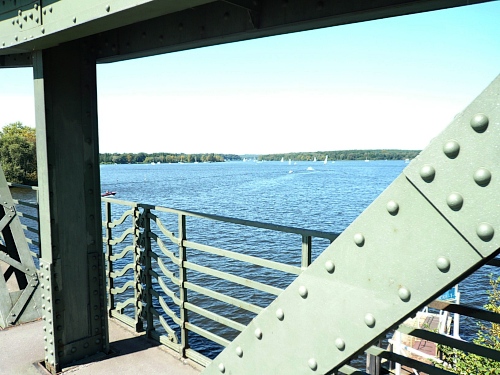 Grenz-und Hafenanlagen der DDR-Wasserkontrollstelle, ein gesprengter Brückenkopf und alte Schleifen von BVG Bus-Endhaltestellen erinnern immer noch an die Teilung.