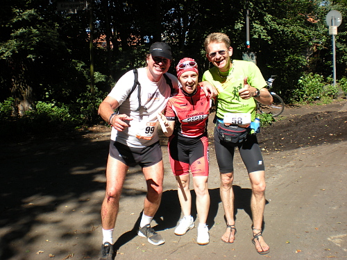 Ein Schrei, die Kamera fliegt in hohem Bogen weg. Die Uhr zerschmettert, Ellbogen ramponiert und Knie blutig. Dazu starke Magenschmerzen, unwichtig in diesem Bericht. Bis zum vierten Verpflegungspunkt puhle ich mir die Steinchen aus den blutenden Handballen und versuche die Kamera zu reparieren. Ersatzkamera.