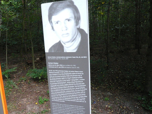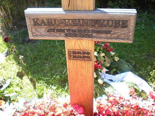 Gedenkkreuz für Karl-Heinz Kube (17), durch einen Kopfschuss getötet. Sein Fluchtkumpel Detlef S. wurde unverletzt verhaftet.