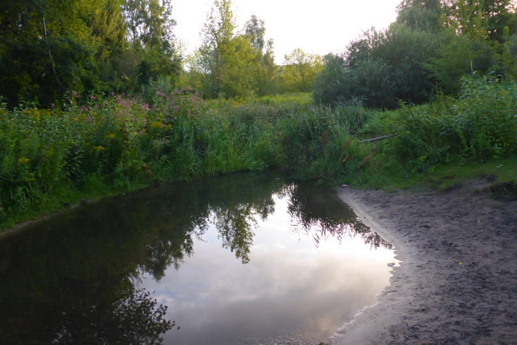 Steinis Kumpels versuchten es mit 16 Jahren an der Grenze nach Jugoslawien, wurden entdeckt, konnten sich aber mit einem „wir haben zu viel getrunken“ freireden. Hier am Tegeler Fließ versuchten sie es wieder, liehen sich das Auto vom Onkel und fuhren damit auf das Feld. Hier links gruben sich durch den Sand in dem Fließ und krochen unter den Drähten durch. Auf beiden Seiten waren Felder. Es war bekannt, dass die Grenze nicht immer direkt an der Befestigung verläuft, also krochen sie in Unterhosen nach Süden, bis sie auf ein Auto mit Westkennzeichen stießen. Nach mehrfachem Klingeln öffnete die Hausbesitzerin und sah zwei Gestalten in Unterhose. Das Auto des Onkels wurde beschlagnahmt und an Parteimitglieder verkauft.