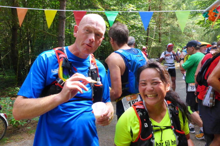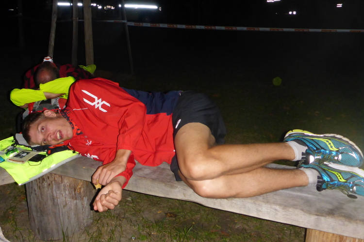 Wir laufen an der Exklave Eiskeller vorbei. Links, wo er im Alter von 19 Jahren erschossen wurde, quaken die Frösche. Vor mir liegt der nächste VP. Läufergestalten liegen auf Pritschen, ich gebe zum wiederholten Mal meinen Mageninhalt auf, was die Sanitäter und schlafenden Mitläufer erschreckt.