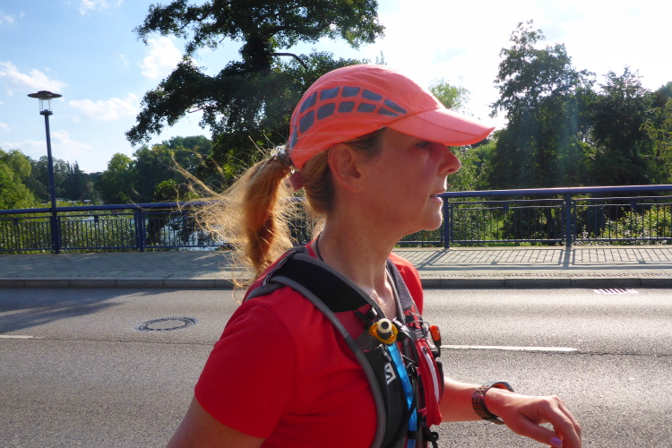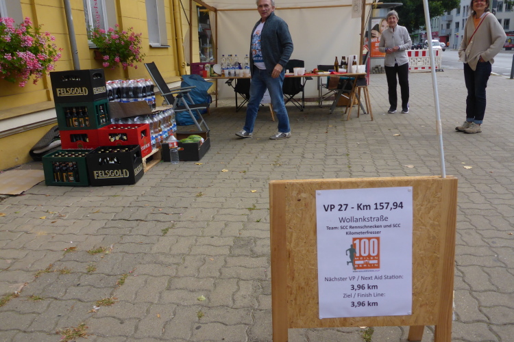 Am VP Kirchhainer Damm (km 42) rechne ich mir scherzeshalber eine Zielzeit von unter 20 Stunden aus.
