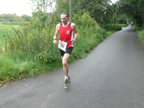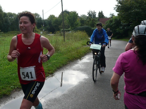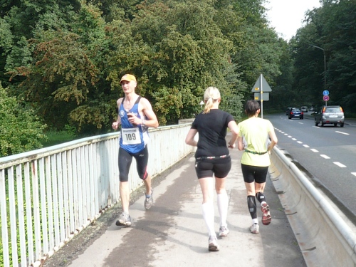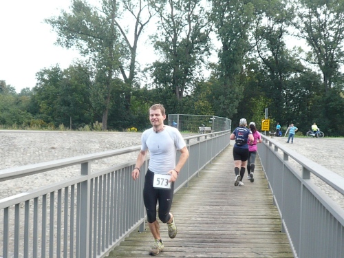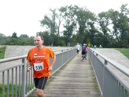 Und noch etwas habe ich auszusetzten: Da hat ein Ackergaul seine runden Sachen genau in die Kurve an der Brücke gelegt. Ich fand das voll sch...., denn das hat mein Kurvenverhalten negativ beeinflusst. Aber ich habe mal das Gefühl genossen, von einem Führungsfahrrad den Weg frei gekämpft zu bekommen. Naja. Ich war zwar nur an „zweiter Stelle“, habe mich aber zusammengerissen und bin gelaufen wie ein Weltmeister. Tat zwar weh, dafür habe ich jede Menge Aufmerksamkeit genossen...für wenige Minuten. Es ist schön, an den Mitläufern vorbeizusausen. Es war dann auch meine Bestzeit in den 10km-Runden mit 1:03. Von Platz 102 in der zweiten Runde auf Platz 46 in der letzten Runde. Ich bin ein Star! Ich möchte Leserzuschriften!