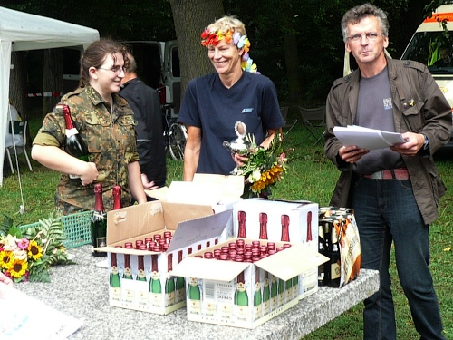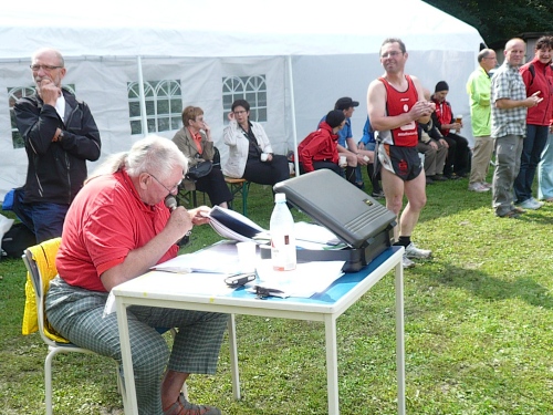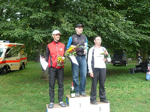 André Dreilich, der letztes Jahr die Orga von Lothar Feike übernommen hat, hat ganze Arbeit geleistet. Ich habe nur glückliche Gesichter gesehen, außer vielleicht den neuen Bayerischen Meister Christian Jakob, der seine Haare wegen einer Wette opfern muss, und ein 100km-Novize, der seiner Freundin einen Heiratsantrag machte. Naja, sie hat „Ja“ ins Mikrofon gehaucht, aber darauf hätte André wohl eh keinen Einfluß gehabt.