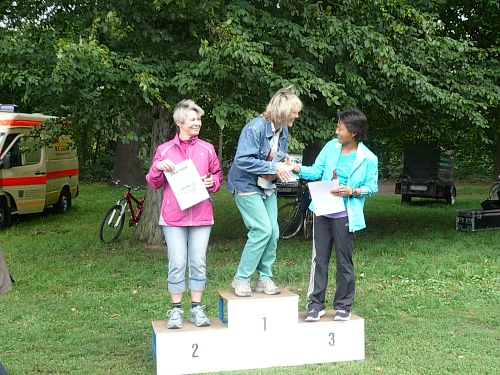Am Auensee gibt es eine außergewöhnliche, grandiose Herzlichkeit, aber auch korrekte Korrektheit. Elke Musial, die Damensiegerin bei den 100km hatte die Anmeldefrist für die Sächsischen Meisterin verpasst (31.07.), so wurde Petra Neumann, die Zweitplatzierte Sächsischen Meisterin. So sind die Bedingungen, knallhart.