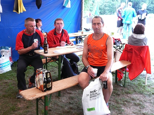 Auch die Biersorten folgen dem Tagesverlauf: erst Malzbier, dann Alkfreies und dann Köstritzer Pils. Natürlich gibt es Cola, leicht salziges Wasser, Iso, Äpfel, Wassermelonen usw. Die „Damen vom Pilz“ sind seit Jahren das Highlight der Versorgung, die heissen nicht wegen der Biermarke so, sondern wegen dem Unterstand, der dort ist. Ich hab jedenfalls noch nie so eine herzlichere Verpflegungsstation erlebt und wenn du dann in den frühen Morgenstunden auch noch namentlich aus deinem Laufschlaf geweckt wirst, dann ist das der Hit.