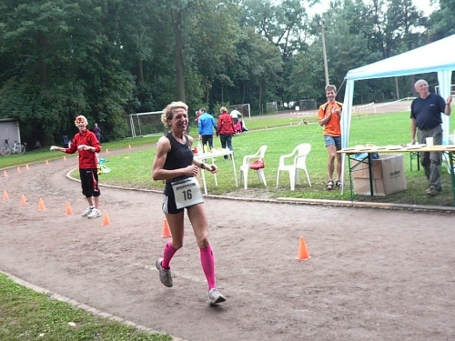 Gabriele, die Zweite von Biel, läuft auf den ersten Platz der Damen bei den 50 km und wird jetzt die Schweiz bei der 100km-WM vertreten. Und damit Gabriele sich nicht langweilt, ernenne ich sie kurzerhand nach 3:53:08 zum offiziellen m4y-Fotografen, denn ich treffe sie nach meinen 40 Kilometern zu diesem Zeitpunkt in der Kampfbahn. Antje Krause macht den 2ten Platz.