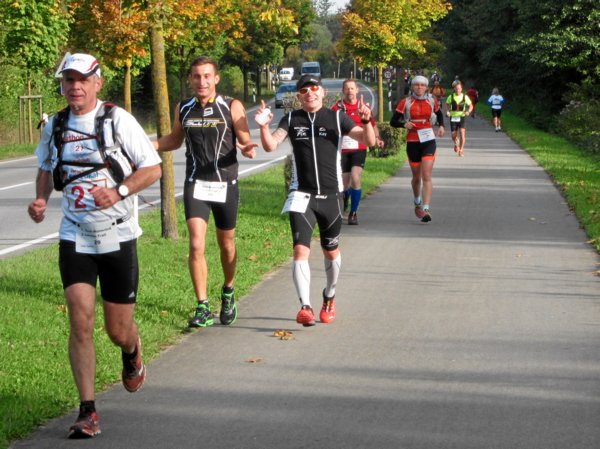 Nach 1:30h überholten uns die Ersten des Hauptfeldes und kurz vor 12.30 Uhr waren wir vier wieder am Ende des Feldes. Da hatte der Regen längst aufgehört, die Strecke war noch matschiger als am Vortag und meine Schuhe hatte ich auch bereits zig Mal ausgeleert.