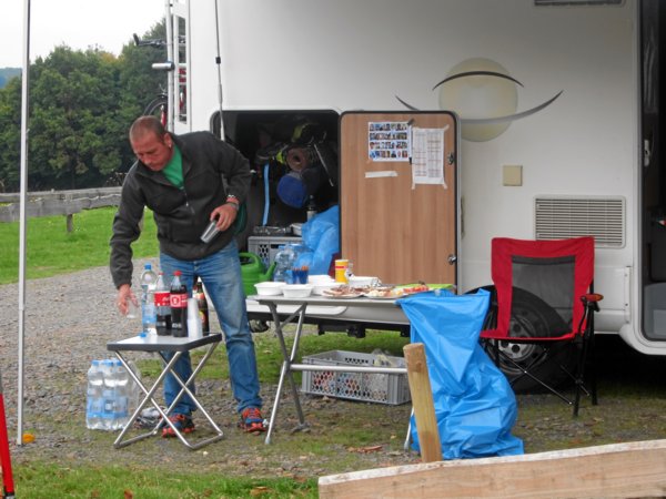 Wenigstens das Wetter aber hielt sich an die Vorhersage: teilweise sonnig, bis 19 Grad warm. Ideale Bedingungen also und wir waren daher auch in bester Stimmung. Auch die Verpflegung passte. Etwa alle 8-10 Kilometer kam eine Verpflegungsstelle, mit allem was man sich so wünschen konnte. Höhepunkt aber war jeden Tag das Wohnmobil von Jörg, der immer noch ein Extra hatte: Schmalzbrote, Kartoffeln, oder warme Suppe oder Kartoffelsalat. Da musste man aufpassen, dass man nicht zu viel Zeit dort verbrachte.