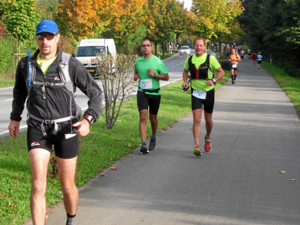 Egal, nach 7:50h, 1.500 Höhenmetern und 42,2 Kilometern waren wir im Ziel. Der Erste hat es in 4:13h geschafft! Unglücklicherweise hat sich Roland hier wenige Kilometer vor dem Ziel verlaufen und entnervt aufgegeben. Dabei lag er doch so aussichtsreich im Rennen.