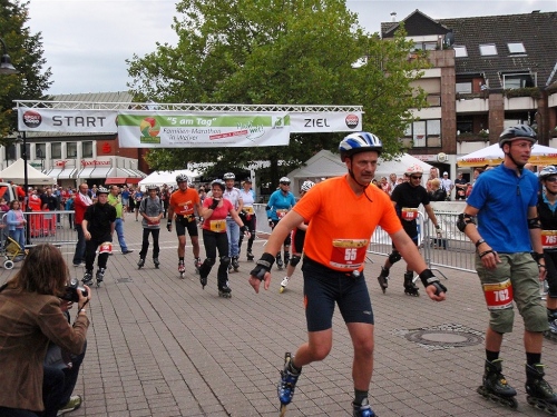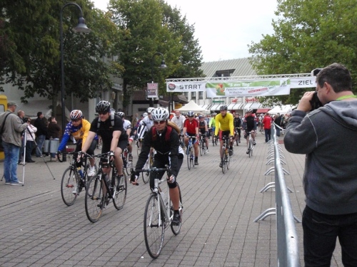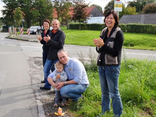 Dann ist es bereits Zeit für die ersten Starts. Um 10 Uhr schickt der Organisator Helmut zuerst die Radfahrer auf die lange Reise. Diese bekommen, wie die späteren Starter, eine genaue Einweisung. Nach den Inlinern dürfen sich um 10.20 Uhr endlich auch wir Marathonis zusammen mit den 30 KM-Läufern auf die 20-Dörfer-Tour begeben. Natürlich nicht ohne den passenden Hinweis, dass wir hier an einer Breitensportveranstaltung teilnehmen. Somit steht der Spaß am Laufen im Vordergrund und die Gelegenheiten für Unterhaltungen sollten nicht ungenutzt bleiben.