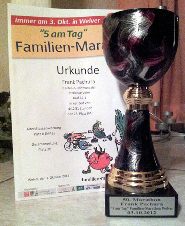 Anfang 2012 hatte ich bereits den Gedanken, meinen 50. Marathon am 3. Oktober zuhause in Welver beim „5amTag“ Marathon zu feiern. Blöderweise hatte ich zu diesem Zeitpunkt erst 31 Marathons auf meinem persönlichen Zähler. Aber das konnte ja noch geändert werden. Das Jahr war ja noch lang.