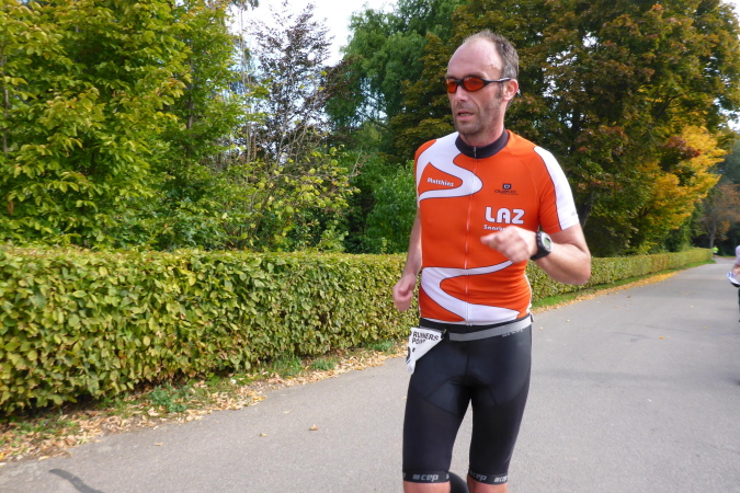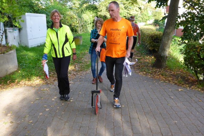 Auf der Strecke selbst ist einiges los. Immer wieder kommen Schnellere von hinten. Man hält ein kurzes Schwätzchen, dann ziehen sie weiter. Auch ich kann einige langsamere Läufer überrunden. Außerdem sind viele Spaziergänger und Radler unterwegs. Zunächst schütteln viele den Kopf, als sie hören, was wir hier so treiben. Gegen später lassen sich auch einige anstecken und klatschen Beifall. Man sieht ja schließlich nicht alle Tage Leute, die freiwillig 6 Stunden im Kreis laufen. Während beim letzten Mal die Streckenrekorde bei Frauen und Männern geknackt wurden, scheinen heuer keine ganz schnellen Läufer am Start zu sein. Der Führende vom Anfang musste seinem hohen Anfangstempo Tribut zollen und ist bereits ausgestiegen.