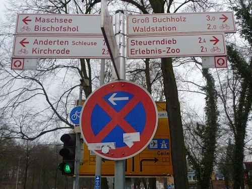 Nun geht es zurück zu unserem Ausgangspunkt, dem Döhrener Turm. Ein paar kleine Begegnungsstücke und Abzweigungen, dann kommen von links und rechts Vielläufer angedackelt. Alle verirrt, entweder irgendwelchen Joggern blind hinterhergelaufen, oder die Markierungen beim Schwätzen übersehen. Marathonlaufen hat halt was mit Intelligenz zu tun. Die zweite Runde beginnt.