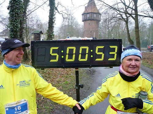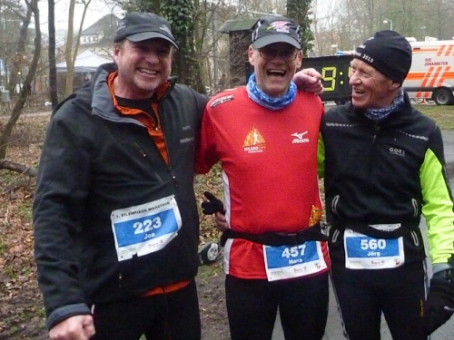 Heute läuft er seinen 1669ten Marathon, bis zum 5 Mai „muss“ er nur noch 30 laufen, um dann beim großen TUI Marathon in Hannover den 2.000ten zu vollenden. Mit ihm dabei seine Laufgefährten Rosemarie von Kocemba, (Jg. 1944) Nr, 3 der weiblichen Weltrangliste, sie wird ihren 700ten Marathon/Ultra laufen und Christine Schröder mit ihrem 401ten Marathon/Ultra.