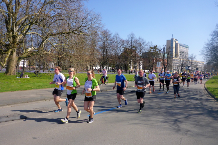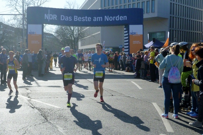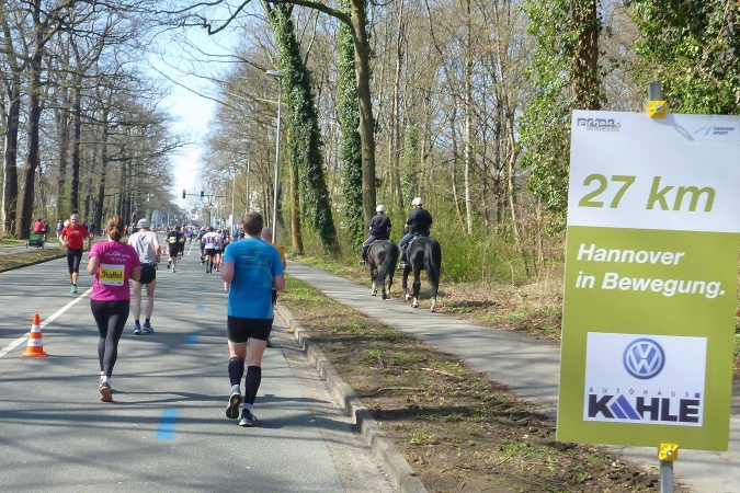 Es fällt auf, dass die Mitstreiter alle ein Lächeln auf den Lippen haben. Das macht hier in Hannover wirklich Spaß. Bei dem Wetter natürlich auch kein Wunder. Das Nord-Ost-Bad wäre sicher auch einen Besuch wert. Läufer aus 101 Nationen sind heute am Start. Die polnischen Läufer werden sich freuen, gerade auf der Pobielski-Allee zu laufen.