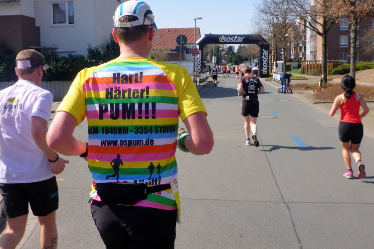 Ungezwungene Startaufstellung. Die Zugänge zu den Blöcken werden von Hannover-96-Football-Hünen gesichert. Der Moderator interviewt den Bürgermeister Stefan Schostok und fragt, wie dieser sich am Start „gegenüber seines Rathauses“ fühlt. Das tut weh, in der Stadt, in der das reinste Hochdeutsch gesprochen wird. In diesem Fall ist ausnahmsweise „der Genitiv dem Dativ sein Tod“ – und nicht umgekehrt.