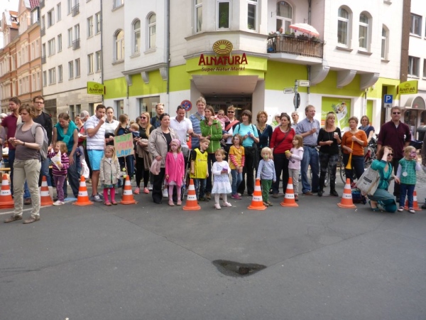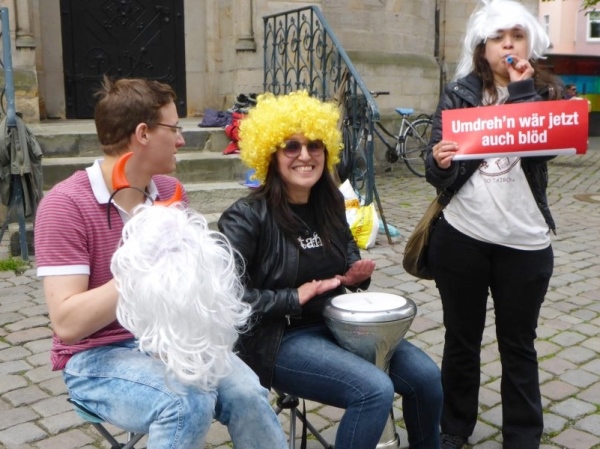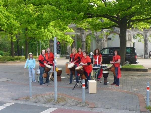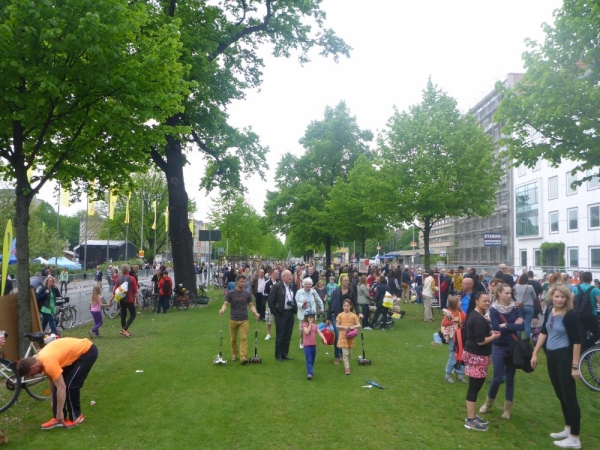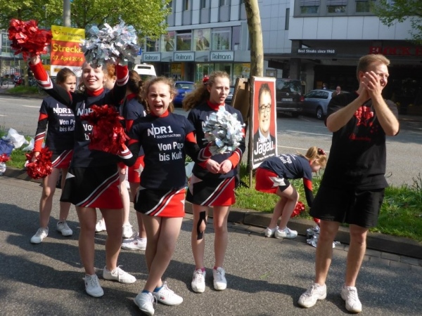 Gelber Pacemaker-Ballon am Horizont? Fehlanzeige. Stattdessen sichte ich einen roten Heißluftballon; per Kran werden Gäste am Aegidientorplatz auf gut vierzig Meter Höhe hochgezogen. Die Fernsicht da oben muss beeindruckend sein.