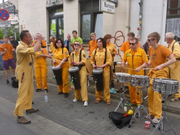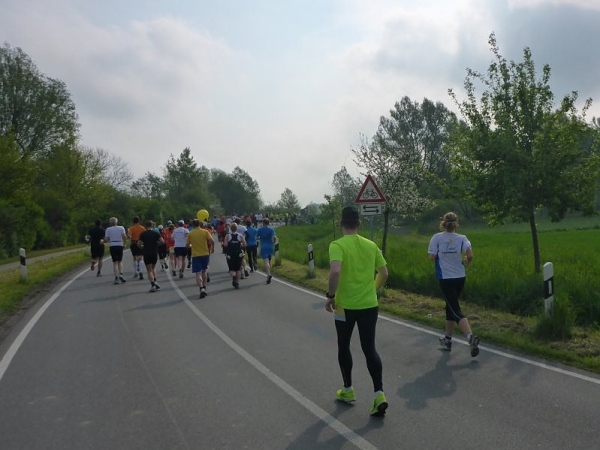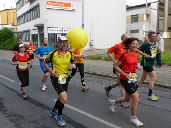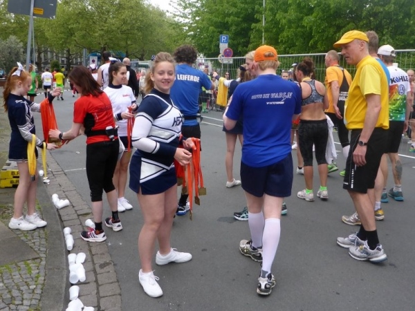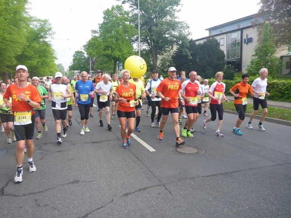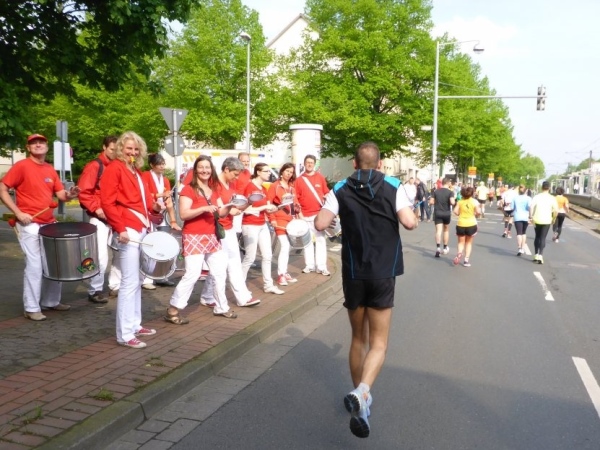 Kopfschüttelnd vertreibe ich die schlechten Gedanken, setze die Kopfhörer auf und will mir eigentlich wieder einen Startersong von Bob Marley anhören…ein Tick von mir. Bei fast allen meinen Starts diverser Laufevents ist der Jamaikaner stets dabei und sorgt nebenher noch dafür, dass ich mich nicht vom anfänglich schnellen Tempo der übrigen Läufer mitreißen lasse. Ich fummelte am mp3-Player herum, der Song lässt sich partout nicht abspielen. Derweil überholen mich die restlichen Läufer. Nomen Est Omen? Jemand klopft mir grinsend auf die Schulter: „Lass gut sein, genieß doch den Song der Scorpions, der grad aus den Boxen dröhnt!“ Okay, recht hat er. Ich peile den gelben Ballon der letzten Pacemaker-Gruppe an und beginne meine Aufholjagd.