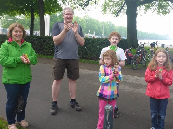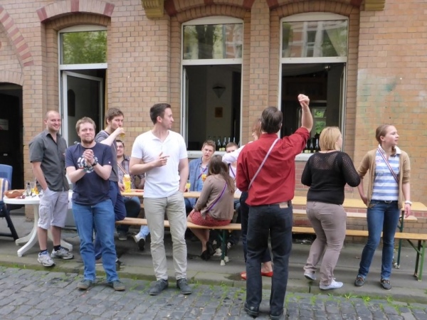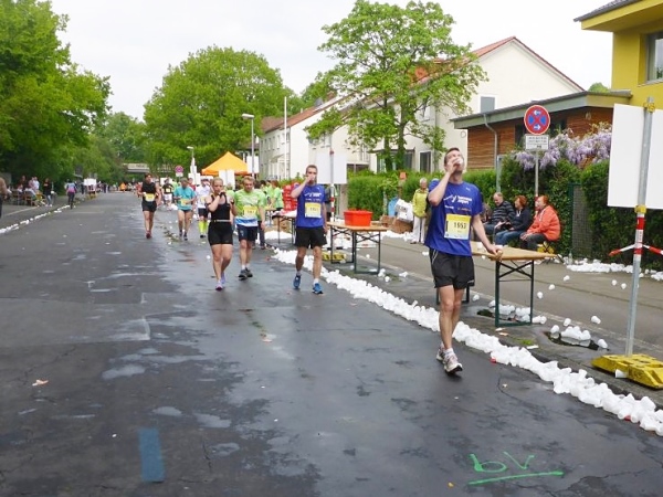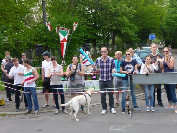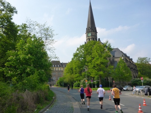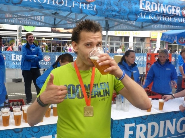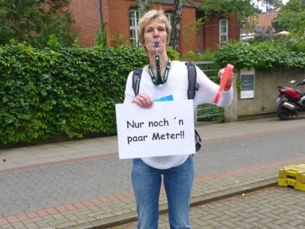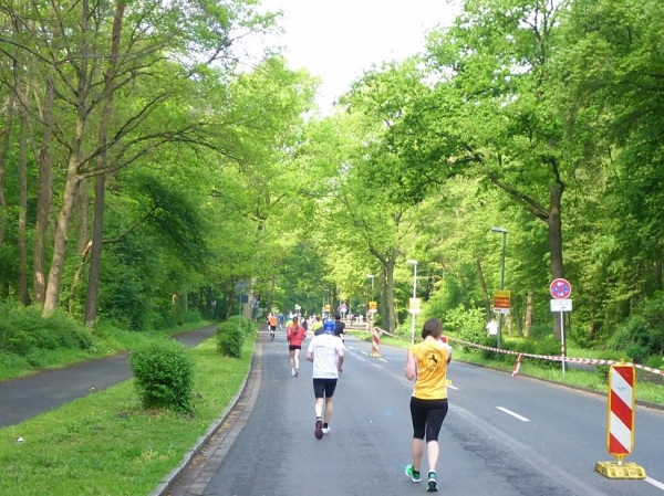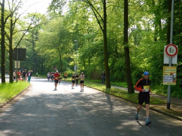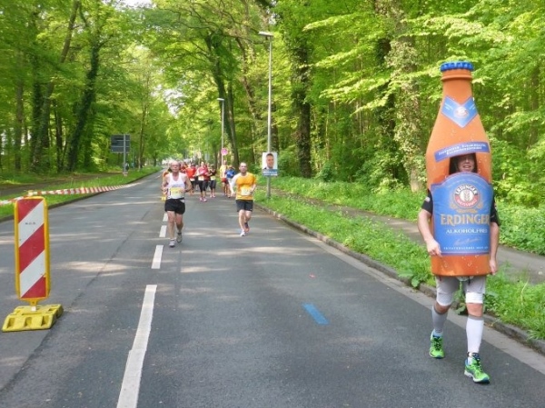 Dann passiert das Teilnehmerfeld den Zoo, den fünftältesten Tierpark Deutschlands. Der Zoo liegt im gleichnamigen Stadtteil und umfasst eine Fläche von 22 Hektar. Ich halluziniere vermutlich bereits, da ich während der letzten VP’S nur Wasser getrunken hatte. Jedenfalls macht es den Anschein, als würde eine überproportional große Flasche auf zwei Beinen vor mir flüchten. Ja, ich habe die heftig schwitzende Bierpulle letztlich hinter mich lassen können – siehe Foto.