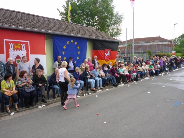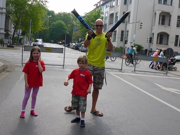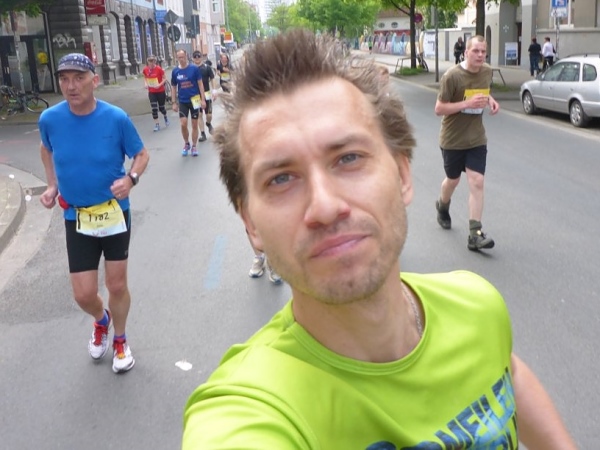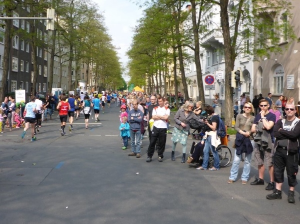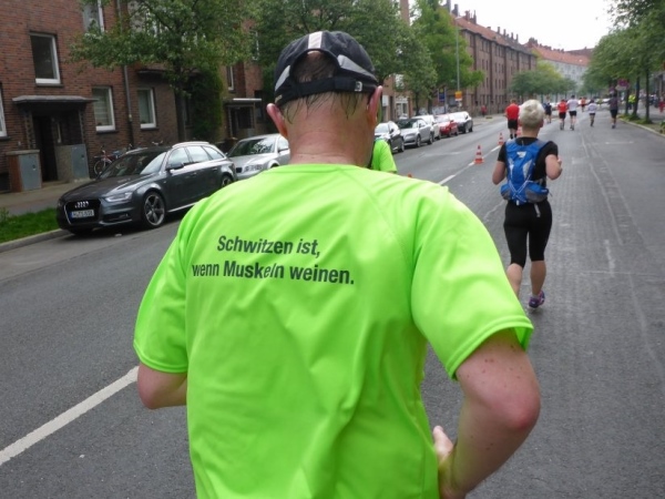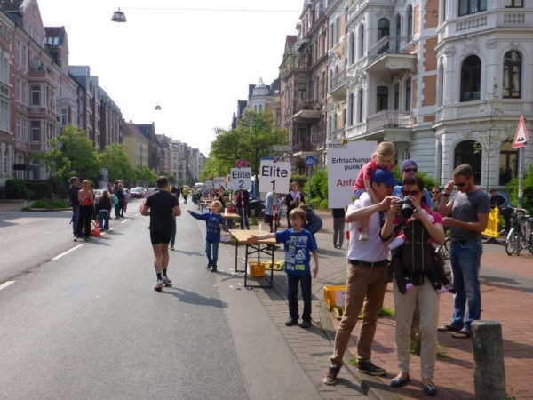 Im bevölkerungsreichsten Stadtbezirk von Hannover herrscht absoluter Ausnahmezustand: die Zuschauermenge klatscht, tobt, jubelt! Von Dachgeschoßfenstern, Balkonen und Terrassen schreien die Leute meinen Namen. Einen Augenblick lang verwandelt sich Vahrenwald-List in das römische Kolosseum – Gänsehautfeeling. Ahu ahu ahu! Der Spieleveranstalter versteht es vortrefflich, sowohl das Publikum als auch tausende von Gladiatoren am heutigen Tag bei Laune zu halten. Ein Fan bläst in die Tröte, hebt den Daumen. Dann verlasse ich diesen besonderen Streckenabschnitt und fühle mich lebendiger denn je…diese Ehre wurde im antiken Rom normalerweise nicht jedem Arenakämpfer zuteil.