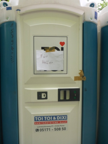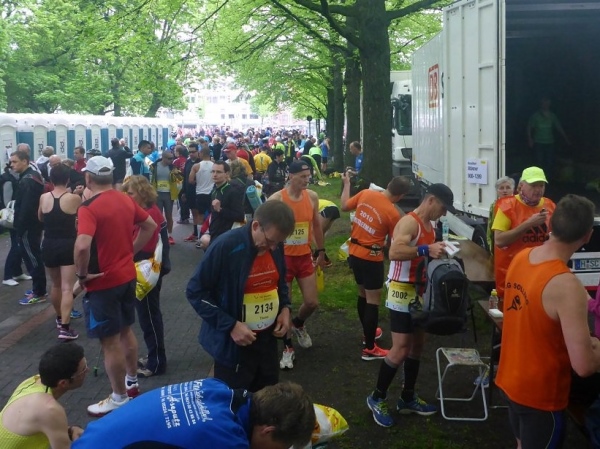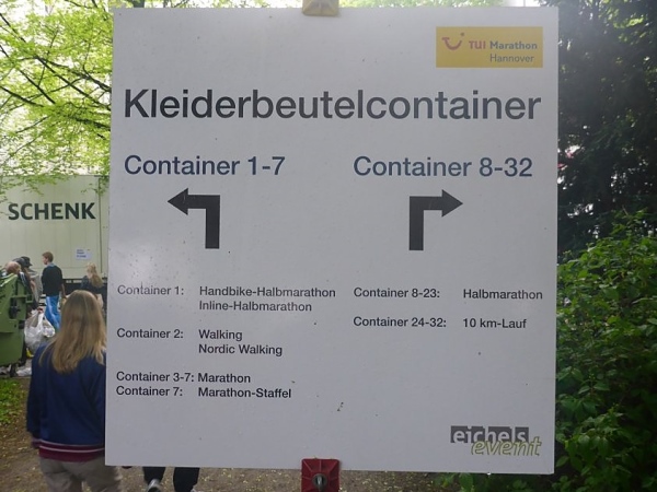 Der Hannover-Marathon bietet eine beachtliche Anzahl von Disziplinen. Fasziniert verfolge ich im Start – und Zielbereich, wie sich Hand-Biker sowie Inline-Skater formieren. Später bewege mich zielstrebig zu den Kleiderbeutelcontainern. Ich überreiche einer älteren Dame meinen Krempel. „Na, mein Jungchen? Marathon? Du bist die Ruhe selbst, was?“ In diesem Moment rumort mein Magen, ich flüchte in das nächstbeste Dixie-Klo. Im Innern blicke ich entsetzt auf Uhr und Klobrille: beides bereitete mir absolut keine Freude!