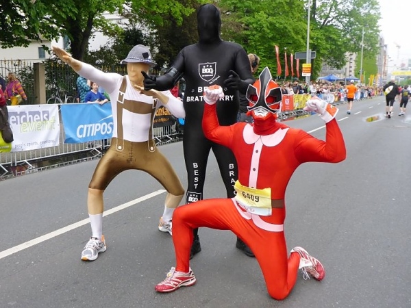 Mehrere Studenten verfolgten das torkelnde Elend von der Straßencouch aus. Einer von Ihnen hielt stumm ein Schild hoch, auf dem eine sagenumwobener Spruch Stand: „Schmerz vergeht, Stolz bleibt“. Mario sah das Schild, legte irgendeinen versteckten Schalter um und rannte die letzten Kilometer plötzlich mit einer derart affenartigen Geschwindigkeit ins Ziel, das er…nun ja, aus Sicht der Zuschauer ereignete sich damals etwas gänzlich anderes. Ein Zombie schlurfte mit blutunterlaufenden Augen traumatisch ins Ziel. Als er so auf dem Bürgersteig lag und man ihm die Medaille um den Hals hing, fühlte er sich wie Phönix aus der Asche: Wiedergeboren und fortan laufsüchtig.