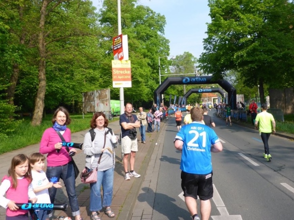 Meine gestrige Harzquerung muss wohl der letzte Gedanke vor dem Einschlafen gewesen sein. Den Ultra spüre ich beim Aufstehen jedenfalls noch immer in den Beinen. Aber gleich so ein fieser Traum? Hatte ich das Ziel, an diesem Wochenende meinen ersten Doppeldecker zu laufen, doch zu hoch gesteckt? Ich gehe ins Bad, drehe das Radio auf, packe meine Siebensachen. Dann verabschiede ich mich von Frau und Töchterchen, denn in wenigen Stunden fällt der Startschuss für den 24. Hannover-Marathon 2014, der größten Laufveranstaltung Niedersachsens. Später würde ich erfahren, das über 18000 Läufer dabei gewesen sind – so viele wie noch nie, Teilnehmerrekord!