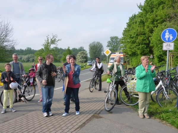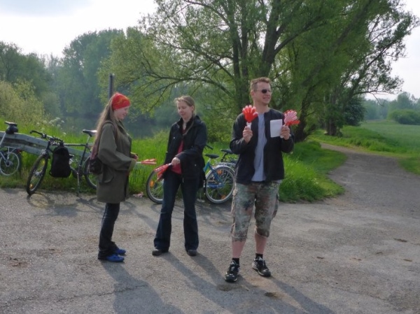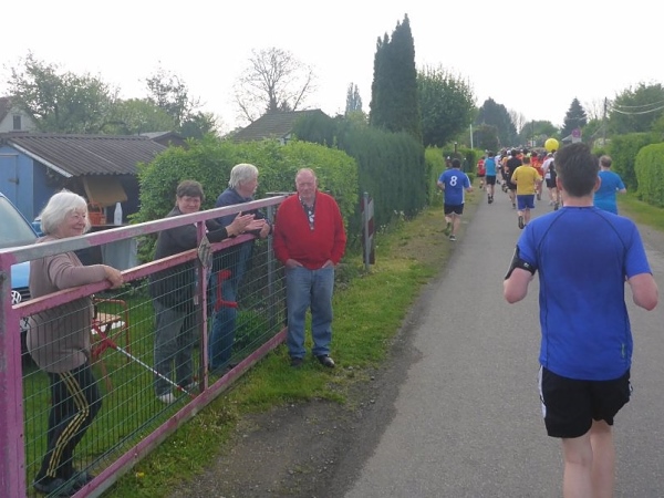 Ich hatte mir den Streckenverlauf nicht im Detail angesehen, denn ich lasse mich gern überraschen. Ich reagiere daher verdutzt, als ich ein Stückchen durch die südliche Leineaue laufe. Die enorme Biotopvielfalt der Leineaue kann auf naturkundlichen Spaziergängen erkundet werden. Mehrere Informationsstationen am Wegesrand erzählen Wissenswertes über die Geschichte der Landschaft und der Tier – und Pflanzenwelt. Vorbei geht es auch an einem Kleingärtnerverein. Vereinzeltes Händeklatschen. „Kraut und Rüben“, denkt sich sicherlich so manch Schrebergärtner bei diesem ungewohnten Anblick.