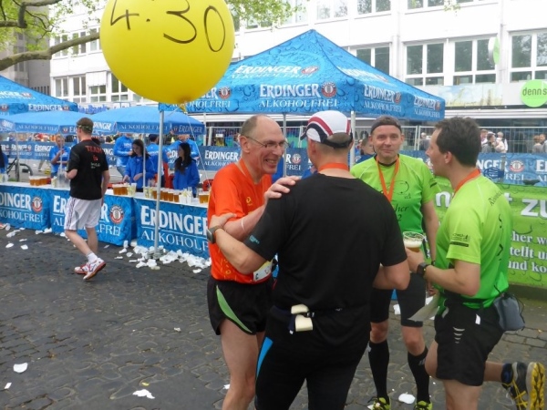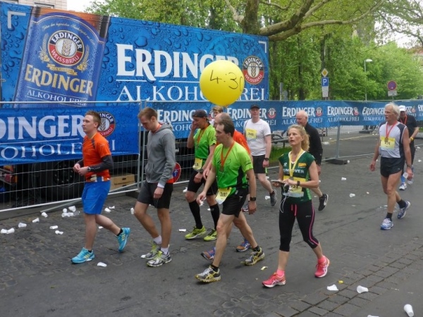 In einem Palais im Georgengarten befindet sich das Wilhelm-Busch-Museum, an dem ich aktuell vorbeilaufe. Die letzten Kilometer sind immer besonders anstrengend, trotz der grünen Pracht um mich herum. Ein Marathoni spricht mich an: „Hey, nur noch vier Kilometer laut Beschilderung. Aber die Pacemaker holen bedrohlich auf.“ Ich blicke zurück, und tatsächlich erkenne ich in einiger Entfernung den gelben Ballon mit der Aufschrift „4:30“. Nicht mit mir! Ich mobilisiere nochmals versteckte Energiereserven und versuche, meinen 6er Schnitt noch zu erhöhen.