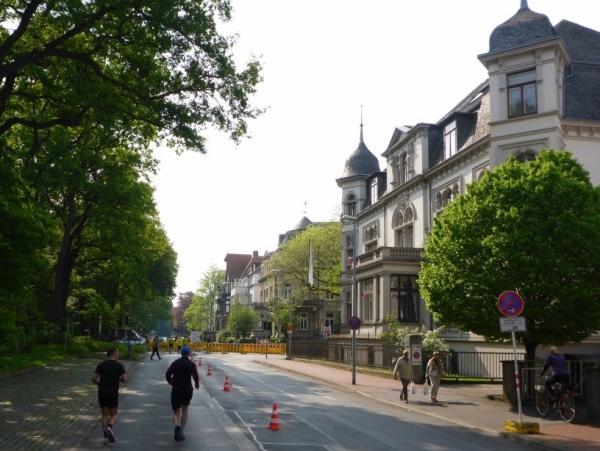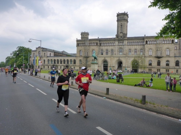 Die Tagesaufgabe aller Marathonis scheint klar definiert: im Uhrzeigersinn soll Hannover abgelaufen werden. Von Vahrenwald aus geht es im letzten Streckendrittel wieder ins Grüne. Als ich am Welfenschloss im Stadtteil Nordstadt vorbeilaufe, erinnere ich mich wieder daran, warum ich damals mal hätte intensiver für den Halbmarathon trainieren sollen.