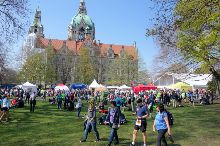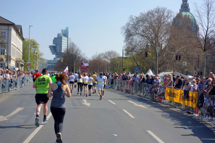 Der HAJ Hannover Marathon erlebt von Jahr zu Jahr ein Wachstum, und zwar in jeder Hinsicht. Am Vorjahrestag des 30. Geburtstags wurden erneut Rekorde pulverisiert. Cheforganisatorin Steffi Eichels kann daher nochmals auf eine mehr als gelungene Veranstaltung zurückblicken. Was mich bei meiner sechsten Marathon-Teilnahme in Hannover ganz besonders erstaunt ist das alljährliche, perfekte Frühlingswetter am Veranstaltungs-Wochenende: Sonne, blauer Himmel, trockene und klare Luft bei 20 Grad - es war weder zu warm, noch zu kalt (außer vielleicht für  die Kenianer). Steffi muss für Hannover eine Schönwetter-Flat gebucht haben. Welch ein Glück für Teilnehmer und Zuschauer!