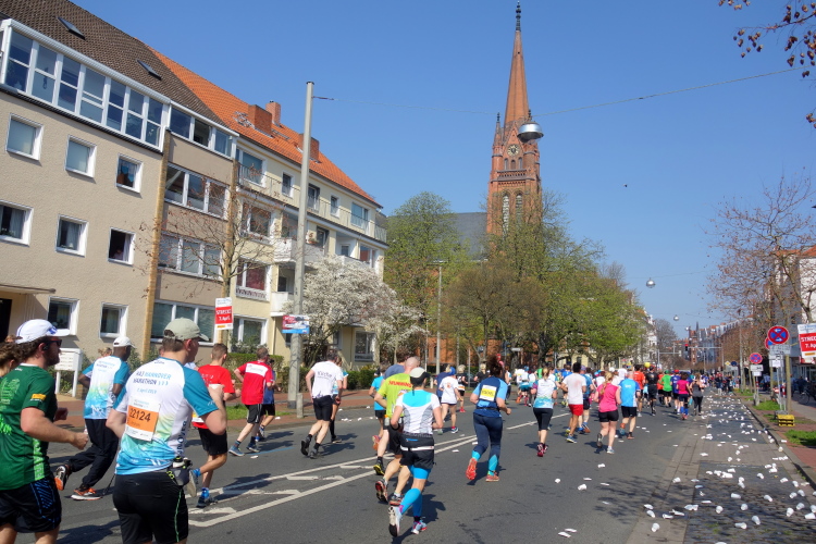Wir  kommen nachVahrenwald-List, 24.000 Menschen aus 108 Nationen leben hier – und machen den Stadtteil damit zu einem der größten und beliebtesten in ganz Hannover. „Ich schaff das, ich schaff das, ich schaff das...“, schnauft und keucht unentwegt ein Läufer mit tief hängendem, hochrotem Kopf  neben mir. Ja, es ist nicht einfach. Mittlerweile hat es in der Sonne gut 25 Grad! Ich drücke ihm die Daumen.