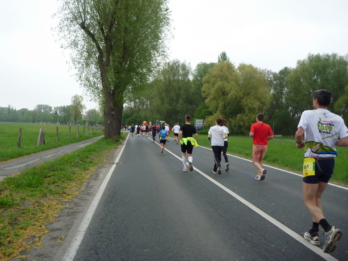 Unter den frisch ergrünten Bäumen laufen wir entspannt entlang des Sees. Ruder- und Segelclubs haben hier ihr Zuhause, Cafés und Restaurants rüsten sich für die Sonntagsgäste. 3 Kilometer ist die Genussstrecke lang, dann verabschiedet uns eine Trommlergruppe nach Döhren. Der Weg dorthin führt durch Wiesen und Getreidefelder und gleicht eher einem Landschaftslauf. Trotzdem muss man nicht ganz auf Zuschauer verzichten, die Betreiber der Schrebergärten stehen mit allerlei Lärminstrumenten an der Strecke.