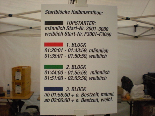 Reibungslose Startaufstellung, ich muß nicht lange suchen und finde sogleich den Eingang in meinen Startblock, der mit einem farbigen „Torbogen“ gekennzeichnet ist. Da Hannover seit dem Krieg extrem breite Straßen besitzt, können wir auf der mittleren Busspur starten, die Zuschauer haben links und rechts auf den Fahrstreifen viel Platz.