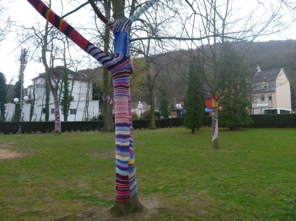 Das Besondere an diesem Staffelmarathon ist die Wertung: Es gibt nur eine einzige. Jedes Team besteht aus max. sechs Teilnehmern, Bedingung ist die Beteiligung mindestens einer Frau und eines Kindes bis 15 Jahre zumindest als Startläufer(in). Nach einer kleinen Einführungsrunde von 891 Metern sind 38 „große“ Runden von je 1,088 km Länge je hälftig rund um den und im Kurpark in einer Maximalzeit von 4:00 Stunden zurückzulegen, da muß ich mich schon ranhalten. Der Erlös geht an drei karitative Einrichtungen, u. a. an die „Aktion Benny & Co.“, für die in der Vor-Osterwoche unter meiner etappenweisen Beteiligung wieder der Rheinsteig-Erlebnislauf stattfinden wird. 65 Staffeln treten heute hier an. Und ein einsamer Dödel. Dachte er, aber er ist nicht alleine, denn auch der Mai ist bereits im März gekommen, und zwar in Person von Christian Mai, dem gestandenen Marathonläufer vom SV Haldern. Gut so, denn geteiltes Leid ist bekanntlich halbes Leid.