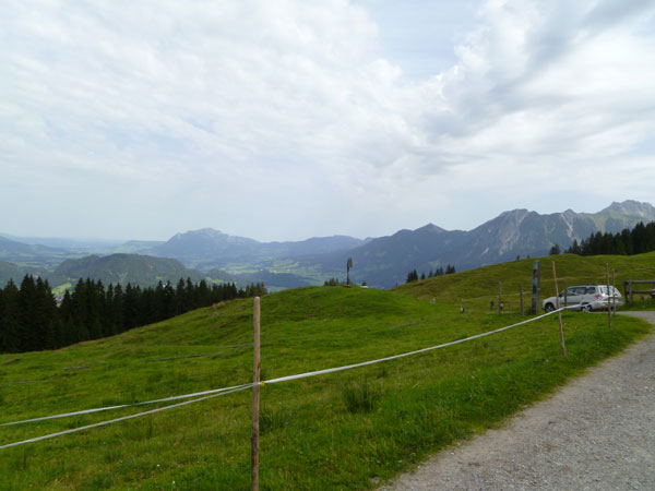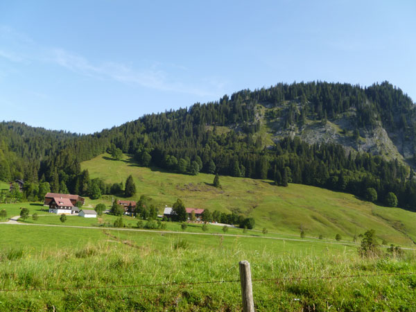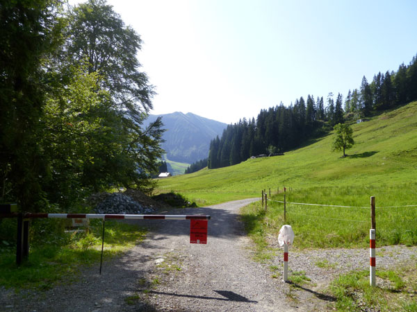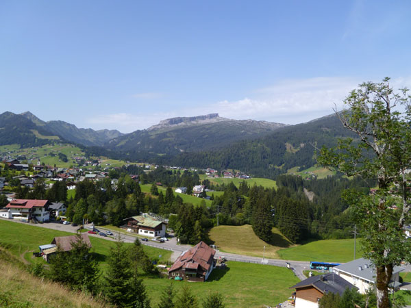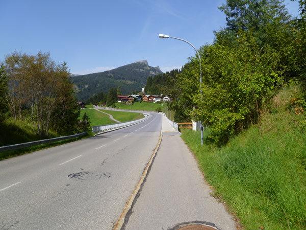 Weiter führt unser Kurs auf einer Teerstraße runter nach Riezlern im Kleinwalsertal. Aufgrund seiner geographischen Lage mit seiner alpinen Geländestruktur gibt es keine direkte Straßenverbindung zum übrigen Österreich. Das Tal ist per PKW nur auf einer Straße aus Deutschland zu erreichen. Es handelt sich damit um eine sogenannte funktionale Enklave, in der es auch einige Besonderheiten gibt. So dürfen bis heute Verhaftete von der Polizei nicht auf der Straße über Deutschland nach Vorarlberg zu Gericht gebracht, sondern müssen mit einem Hubschrauber ausgeflogen werden.
