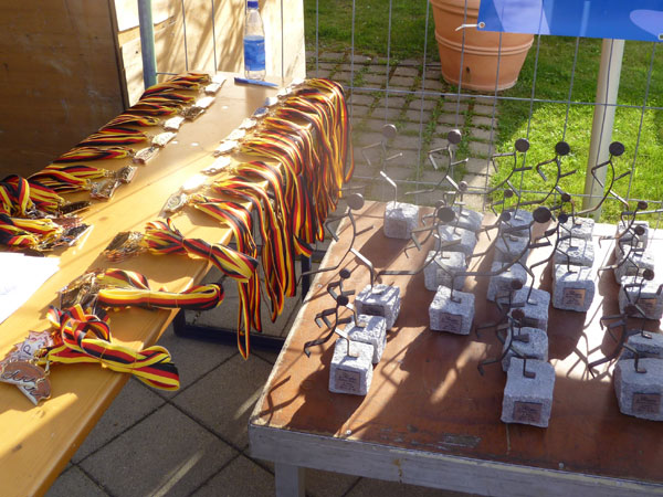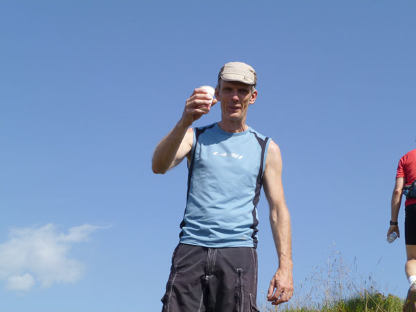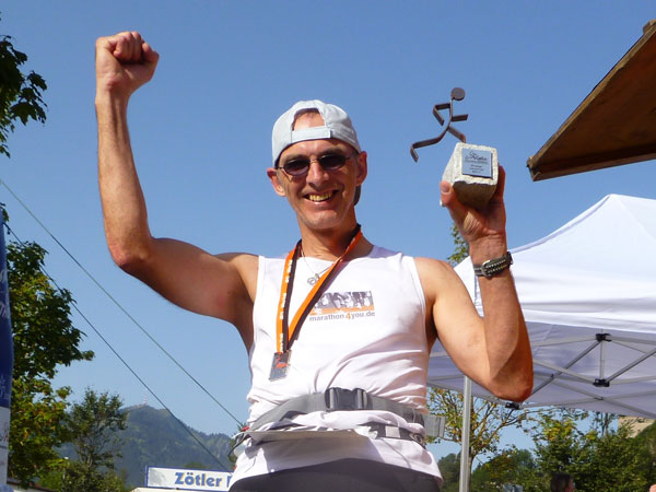 Meine Zeit vom Vorjahr kann ich bei identischen Wetterbedingungen um 50 Minuten verbessern, liegt vielleicht auch daran, dass ich heuer extra noch Salztabletten mitgeführt und regelmäßig geschluckt habe, um Krämpfe zu vermeiden, die mir 2010 noch stark zugesetzt haben. Im Ziel bekomme ich, wie jeder andere Ultra Trail Finisher auch, das Steinmännle zur Belohnung. Ein tolles und auch begehrtes Souvernir und des hamma uns auch wirklich verdient.