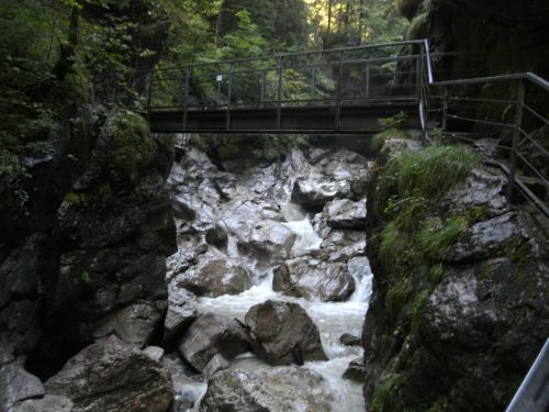 Am Samstag wollen wir die Gelegenheit nutzen und etwas von der schönen Landschaft des Allgäus sehen. Wir marschieren Richtung Grünten, mit 1.738m weithin sichtbarer Hausberg von Sonthofen. Schlapp wie wir uns fühlen, verzichten wir jedoch auf den Aufstieg und gehen in die Starzlachklamm zu Füßen des Grünten. Hier bewundern wir die bizarren Formen, die die Starzlach in den Fels gearbeitet hat. Einige Mutige durchqueren die Klamm gerade - Canyooning.