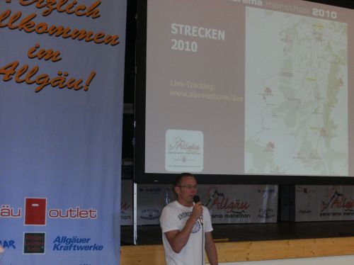 Wir erfahren, dass es beim Marathon eine Änderung der Streckenführung gegenüber dem Vorjahr gibt. Der Marathon führt vom Start am Allgäu Outlet nach Bihlerdorf, vorbei am Kuckucksnest in Richtung Allgäuer Berghof. Weiter geht die spektakuläre Route über die Hörnerkette zum Weiherkopf. Über Grasgehren verläuft die Strecke in Richtung Dinigörgen-Alpe. Kurz vor der Alpe trennen sich die Wege der Marathonis und der Ultras. Die Marathonis laufen durch das Lochbachtal abwärts. Nach Obermaiselstein führt die Strecke an der Weilerach entlang und stößt in Weiler wieder auf die Iller. Dieser folgt man bis zum Ziel.