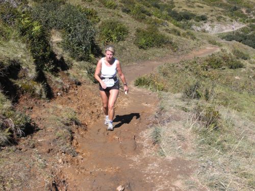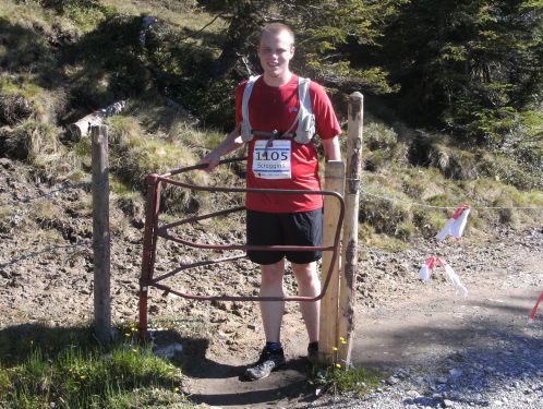 Ich treffe nochmals auf Sean. Er ist besorgt wegen der Zeit. Ich beruhige ihn und sage, dass gut in der Zeit liegt. Er wird das Ziel erreichen. Gratulation Sean! Wir queren Weidegatter und Viehsperren und nehmen den nächsten langen Aufstieg in Angriff. Vor dem Sattel wird der Weg stellenweise wieder ein wenig matschig.