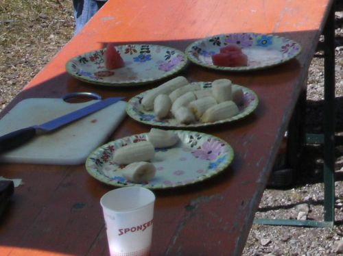 Ich stärke mich bei Grasgehren an der Verpflegungsstelle und nehme sowohl ein Gel als auch einen Riegel. Den Pflaumenkuchen lasse ich vorsichtshalber lieber stehen. Vielleicht hat der ja durchschlagende Wirkung. Ist mir zu unsicher.