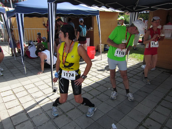 Mit einem alkoholfreien Bier in der Hand kommen wir mit Andreas ins Gespräch. Heute war sein erster Bergmarathon erzählt er uns begeistert, und noch eine schöne Geschichte hat er zu berichten. 2008 nahm er an einer Verlosung zum IRONMAN auf Hawaii teil und gewann. So flog er mit seiner Frau, gleichzeitig auch der 15. Hochzeitstag, nach Hawaii und stellte sich ahnungslos den Anforderungen, die selbst gestandene Triathleten scheitern lassen. Er kam als Finisher nach etwas über 15 Stunden ins Ziel.