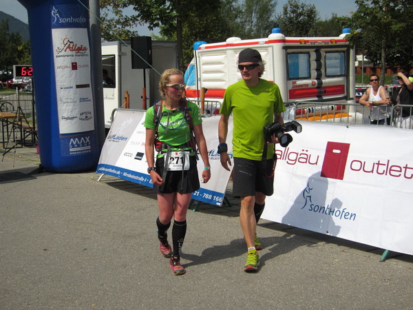 Auch unser Oihoimischer aus Kempten gewinnt in seiner Altersklasse, ebenso Jutta die ihre. Der Zielsprecher gibt den Zieleinlauf der ersten Frau auf der Ultramarathonstrecke durch. Es ist Stefanie! Vor ein paar Wochen wurde sie bei den 4-Trails gesamt 3. Frau und heute gewinnt sie hier bei ihren ersten Ultralauf. Hat dieser Lauf nicht ein schönes Happy End?